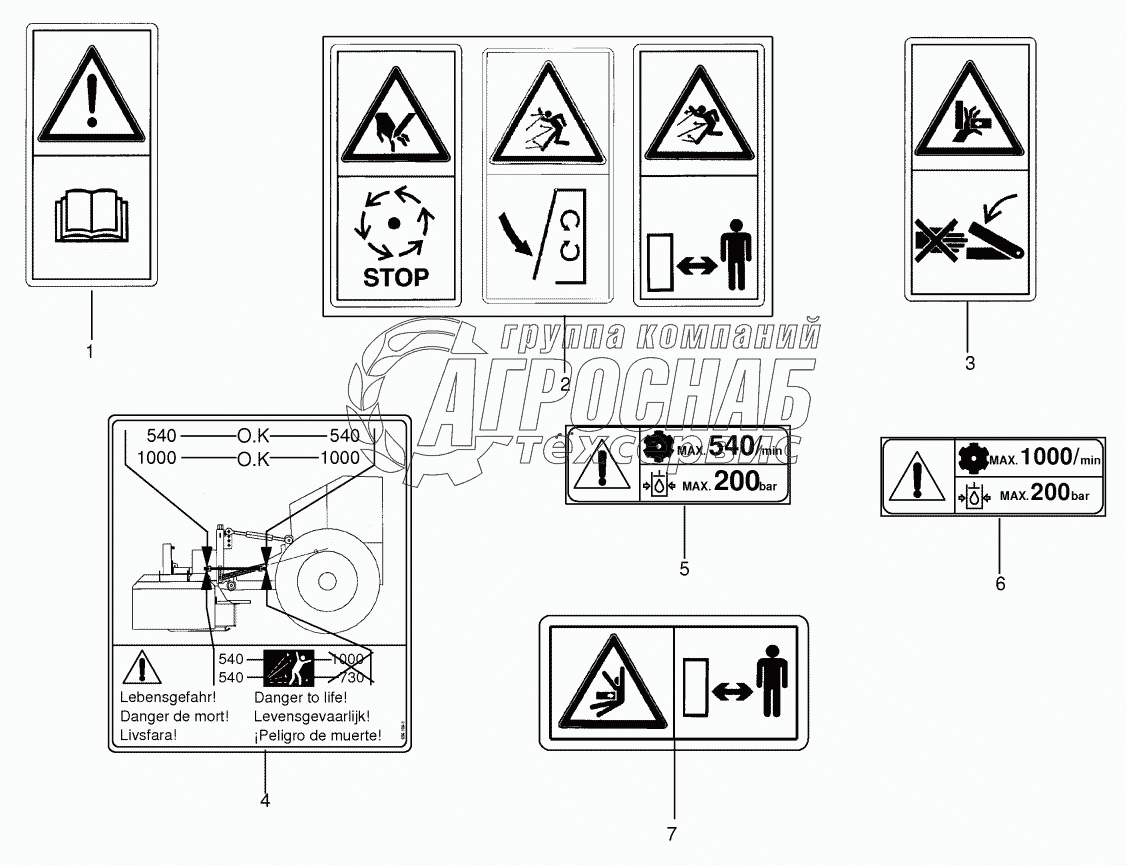 Каталог запасных частей к технике: KRONE EC F320. Warning signs