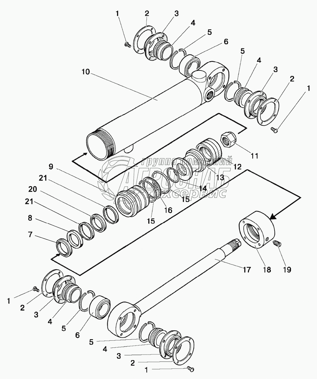 Каталог запасных частей к технике: МТЗ 923.4. Гидроцилиндр Ц63 (63x30-200)