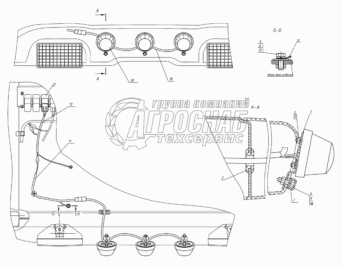 Каталог запасных частей к технике: МТЗ 952.5. Установка фонарей автопоезда