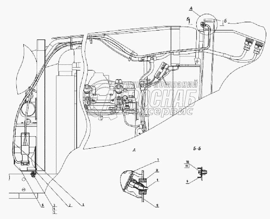 Каталог запасных частей к технике: МТЗ 952.5. Установка стеклоомывателя