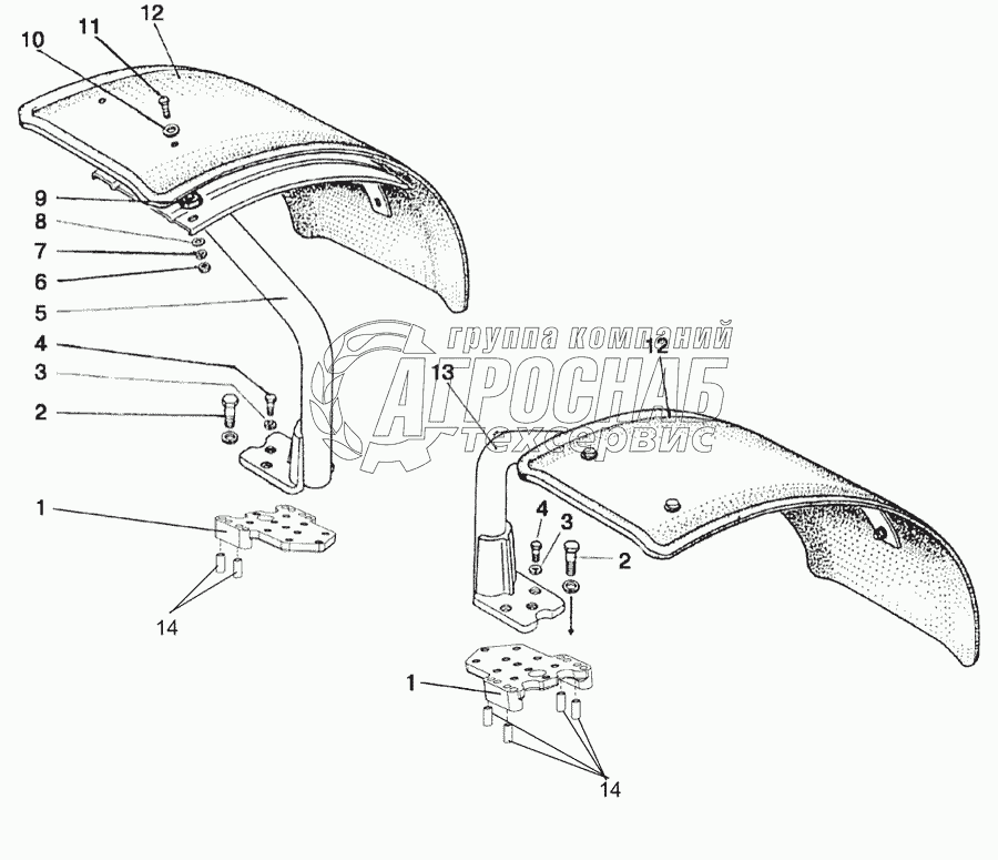 Каталог запасных частей к технике: МТЗ-1221.4. Крылья передних колес