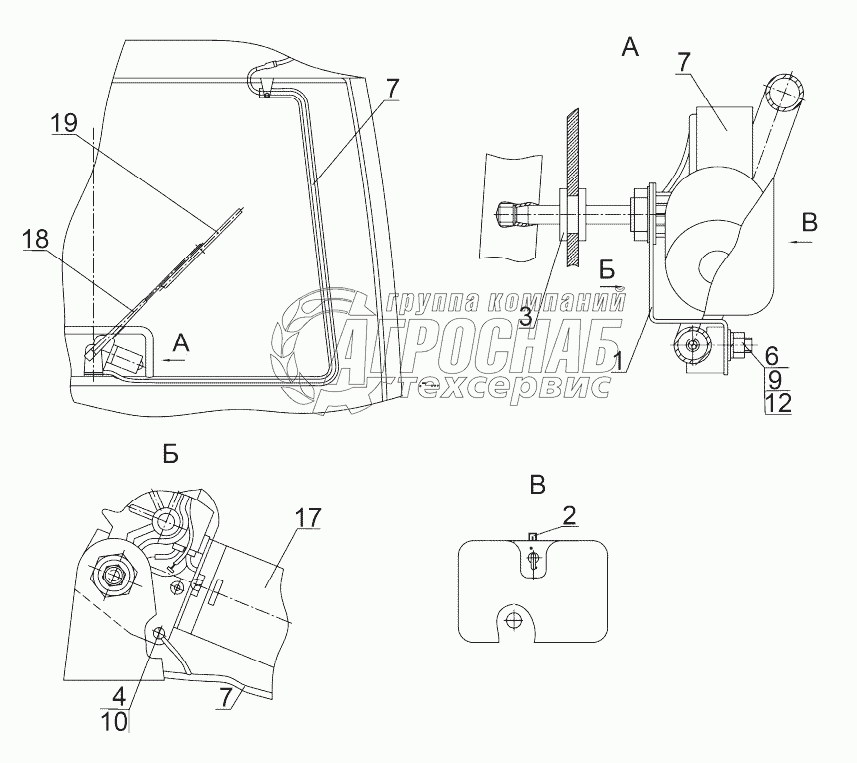 Каталог запасных частей к технике: МТЗ-1523. Установка стеклоочистителя заднего