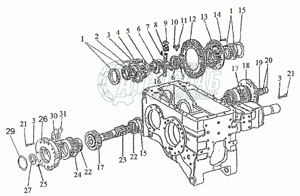 | 18 | 50-2403021-Б | Шестерня ведомая главной передачи (в запасные части поставляется только в комплекте 50-2403014-А) | Под заказ | - | |||||