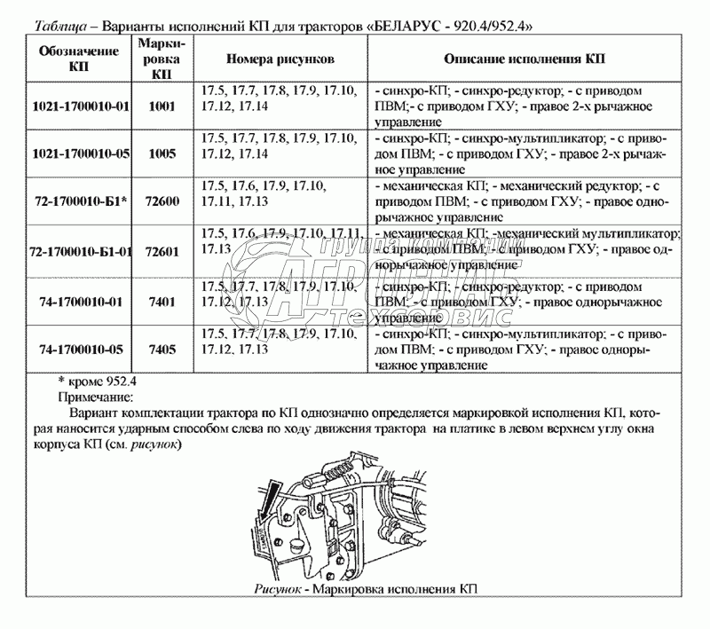 Каталог запасных частей к технике: МТЗ-920.4/952.4. Варианты исполнения КП