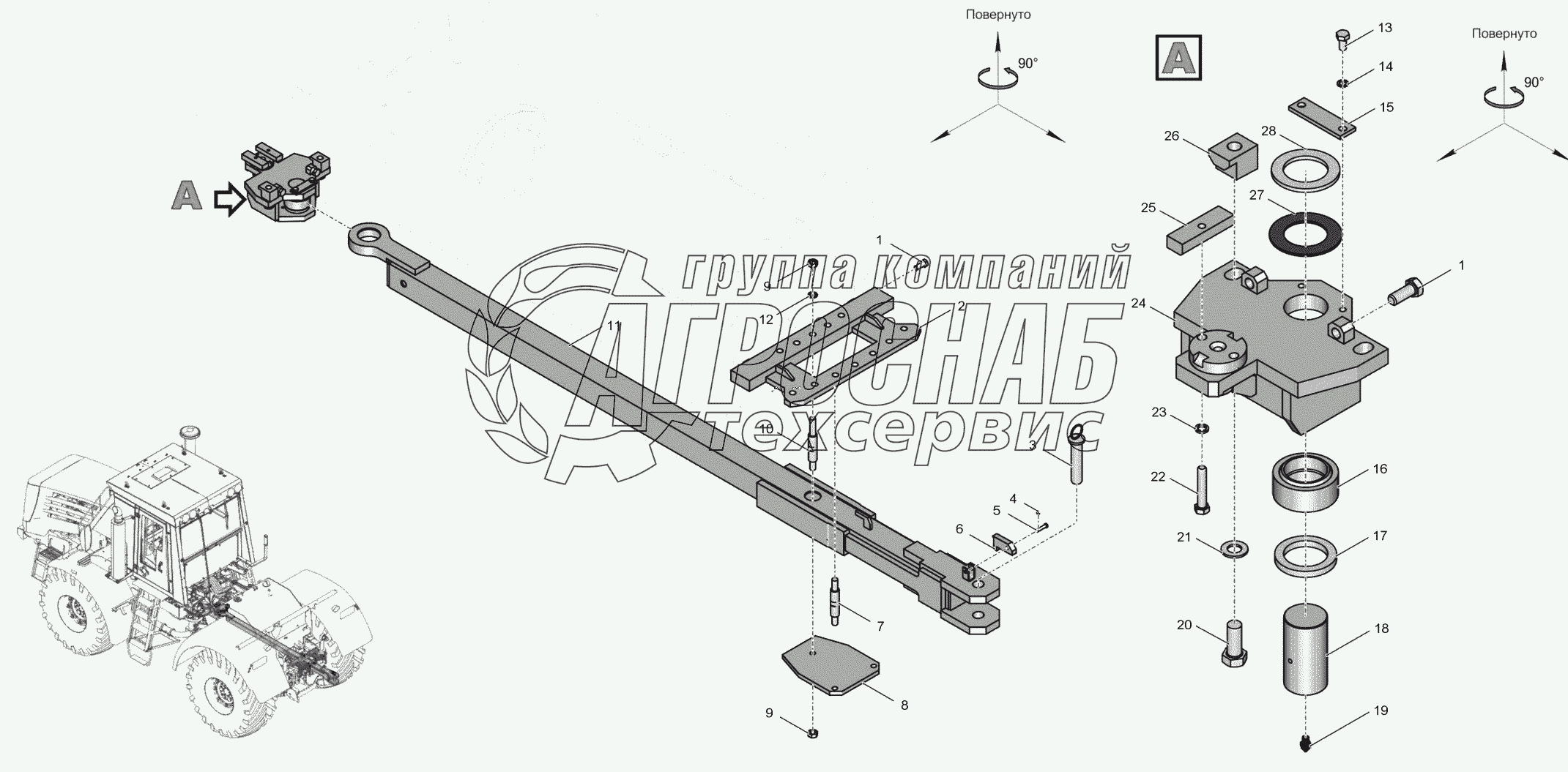 Каталог запасных частей к технике: ПТЗ К-744Р4 "Премиум". 744Р1-4642000 Маятниковое прицепное устройство