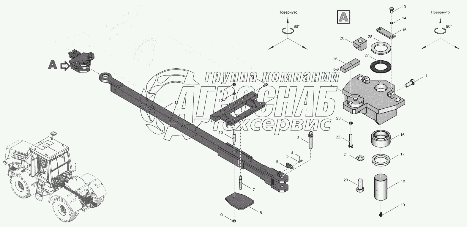 Каталог запасных частей к технике: ПТЗ К-744Р4 "Стандарт". 744Р1-4642000 Маятниковое прицепное устройство
