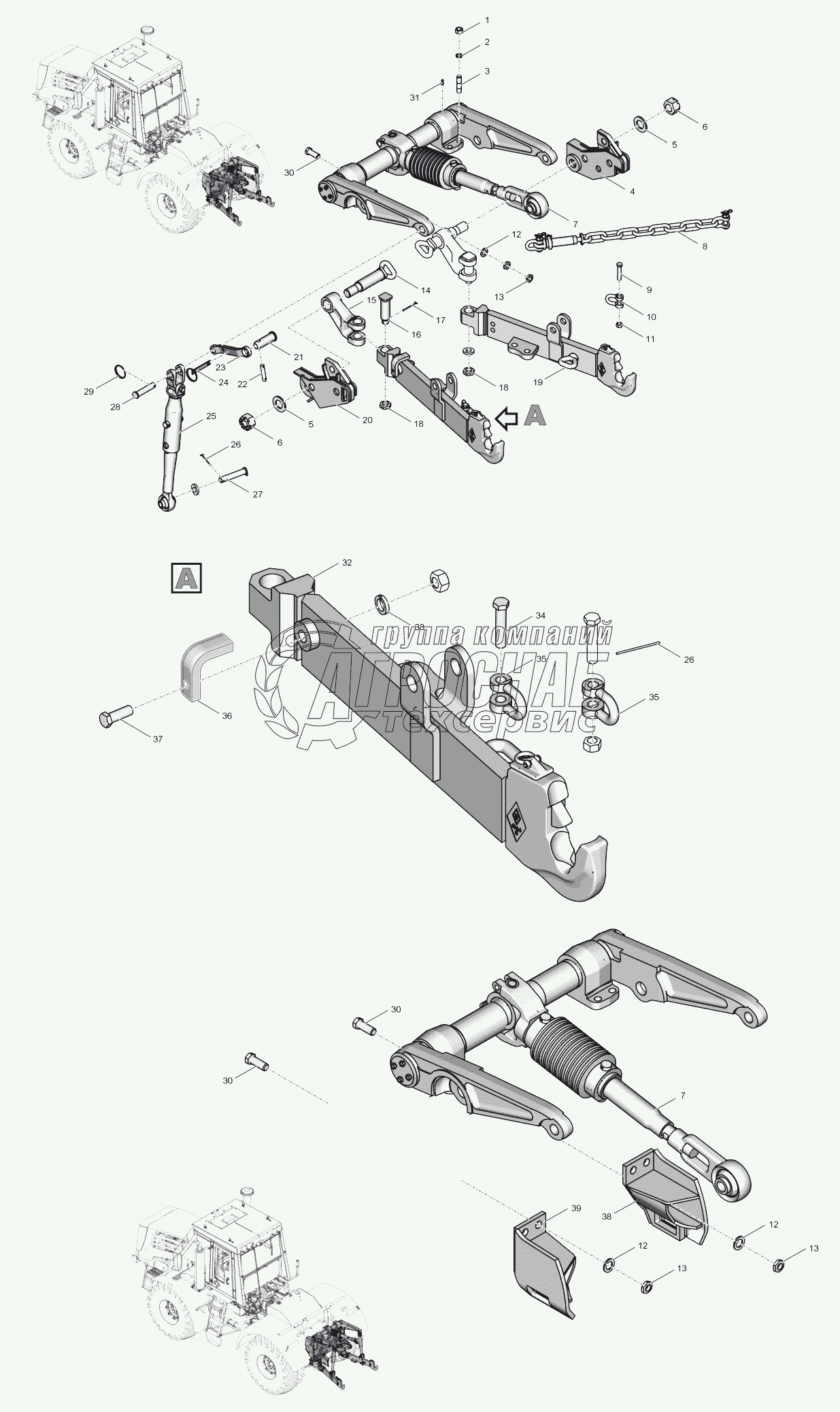 Каталог запасных частей к технике: ПТЗ К-744Р4 "Стандарт". 744Р3-4628000 Механизм навески