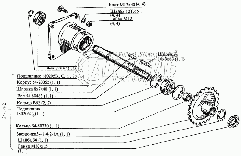 | 3 | 54-1-4-2 | Вал контрприводной | Под заказ | - | |||||