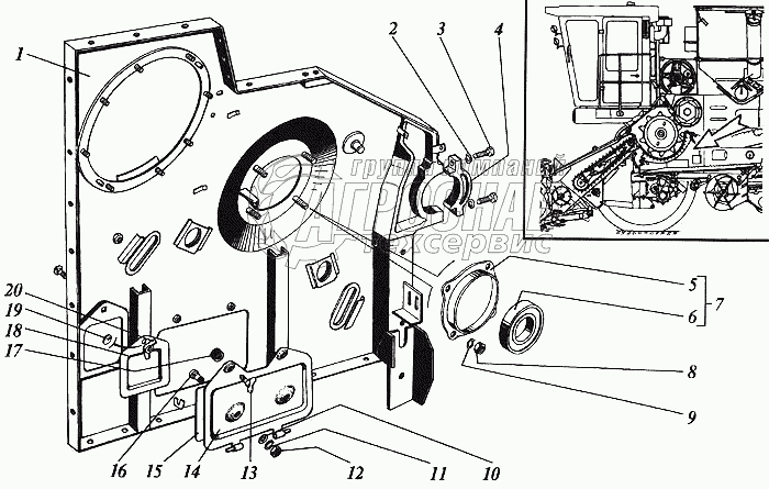 Каталог запасных частей к технике: РСМ Дон 1200. Панель правая передней секции молотилки