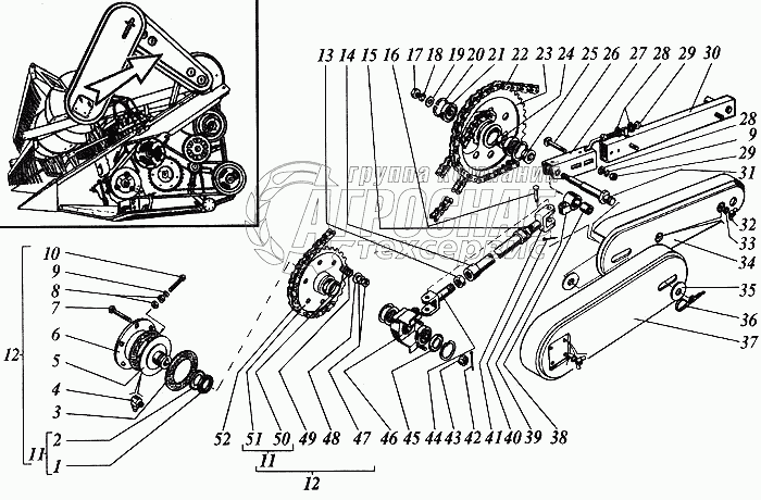 Каталог запасных частей к технике: РСМ Дон 1200Б. Устройство предохранительное, привод мотовила