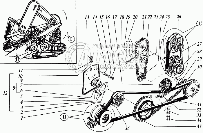 Каталог запасных частей к технике: РСМ Дон 1500Б. Механизм привода рабочих органов жатки