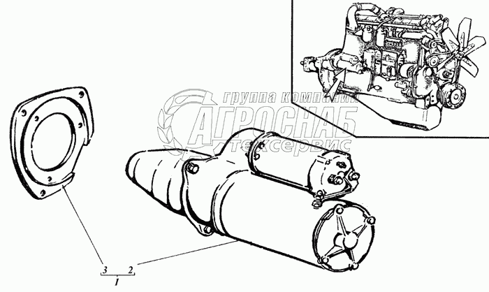 Каталог запасных частей к технике: РСМ Дон 1500Б. Стартер с проставкой
