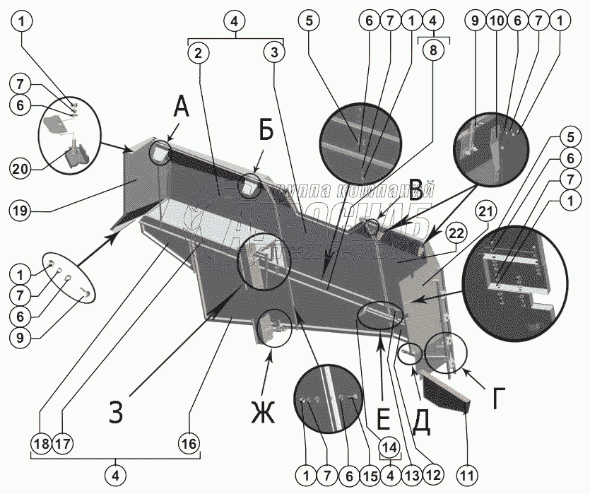 Каталог запасных частей к технике: РСМ-101 "Вектор". Правое капотирование