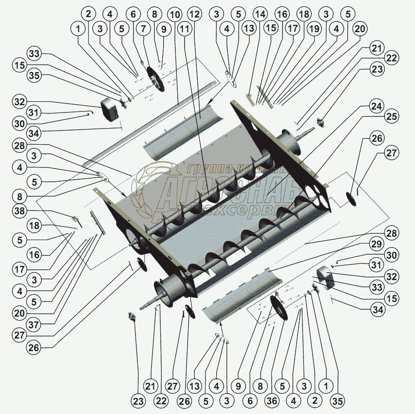 Каталог запасных частей к технике: РСМ-142 "Acros". Блок шнеков