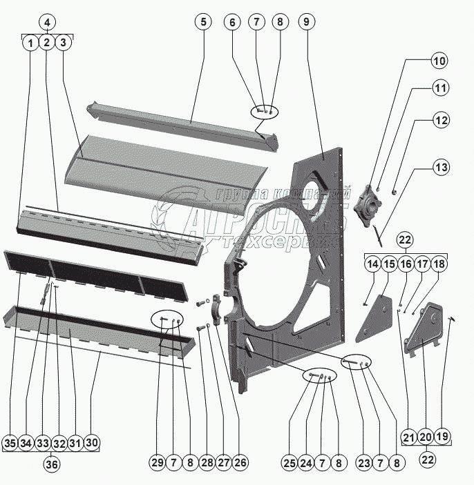 Каталог запасных частей к технике: РСМ-142 "Acros". Панель правая