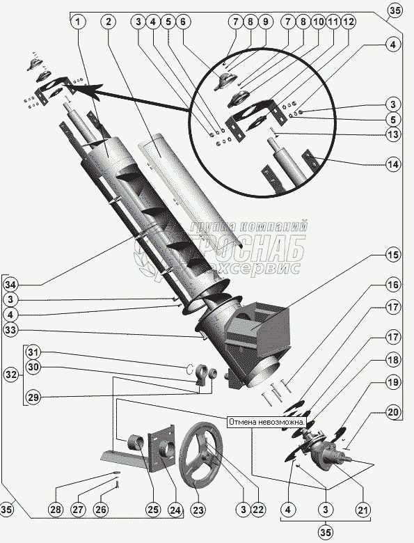 Каталог запасных частей к технике: РСМ-142 "Acros". Шнек наклонный