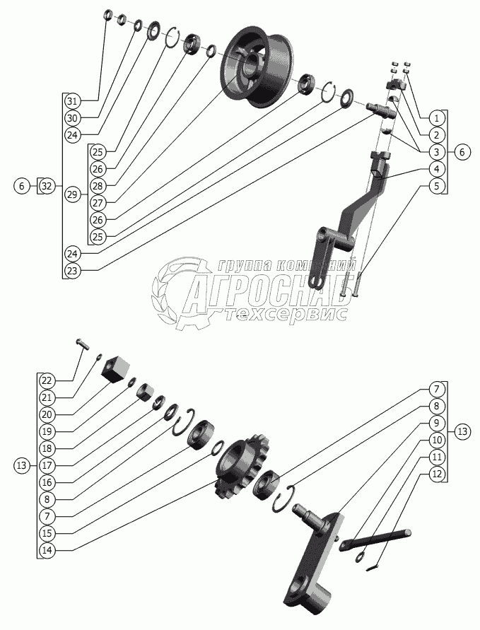 Каталог запасных частей к технике: РСМ-142 "Acros" вариант. Шкив натяжной. Натяжник