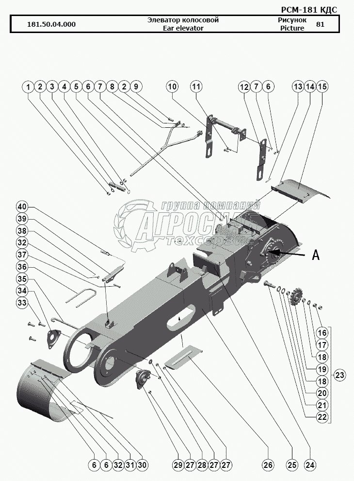 Каталог запасных частей к технике: РСМ-181 "Torum-740". Элеватор колосовой
