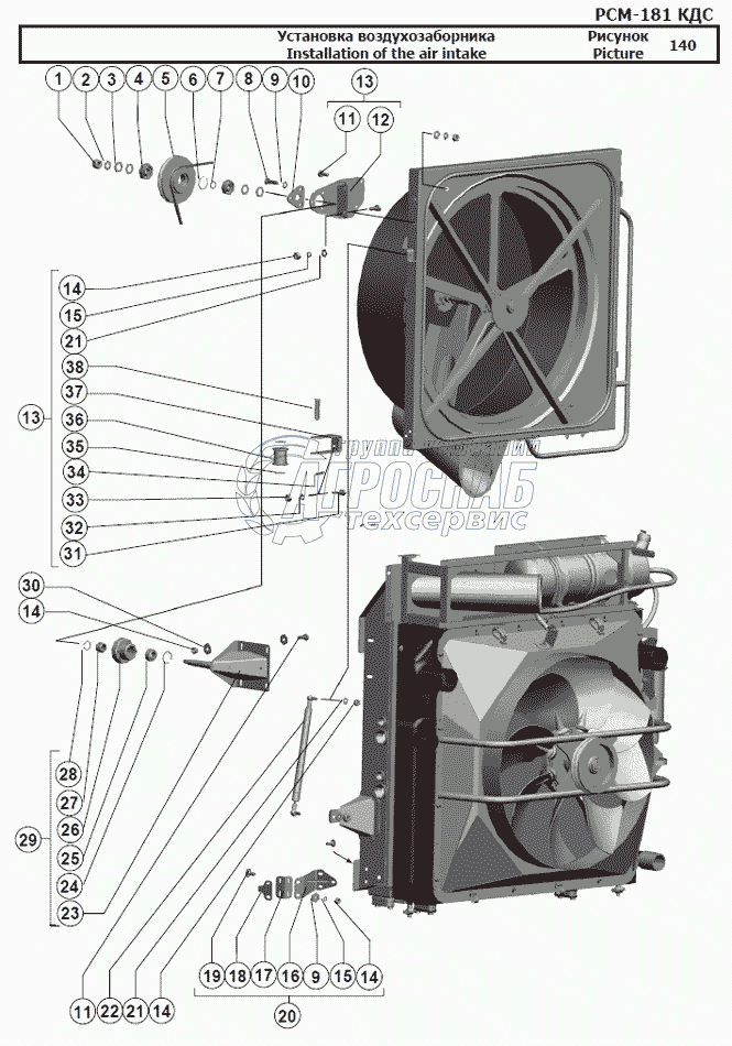 Каталог запасных частей к технике: РСМ-181 "Torum-740". Установка воздухозаборника