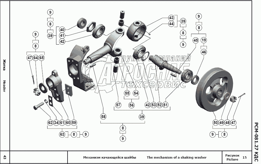 Каталог запасных частей к технике: РСМ Жатка РСМ-081.27. Механизм качающейся шайбы
