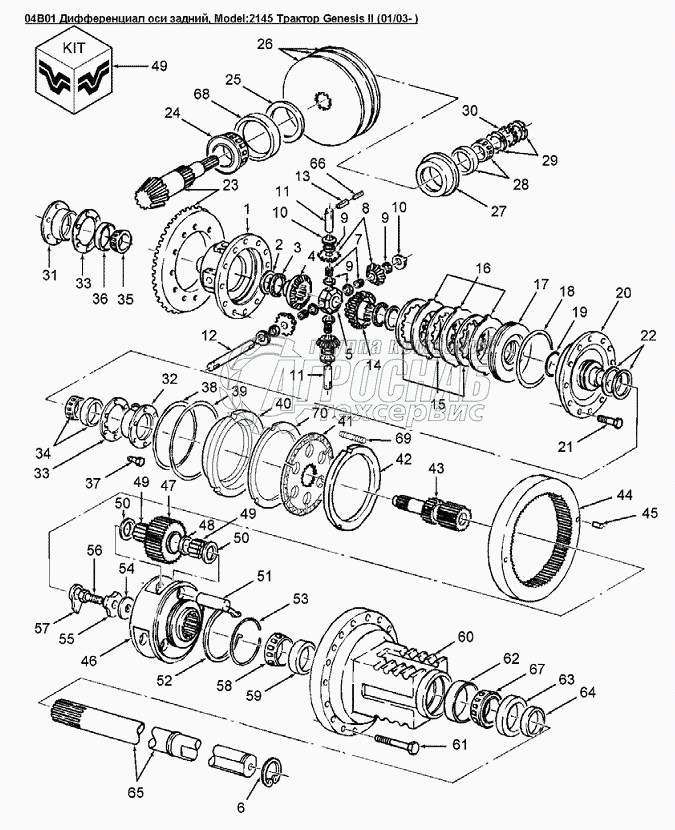 Каталог запасных частей к технике: Versatile серии GENESIS. 04B01 Дифференциал оси задний